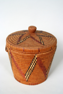 Fraser River (Salish) Round Basket with Knob Top Lid