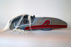 | Item: 20 Artist: Bill Henderson Title: Blue Heron Date: 2005 Size: 9" height x 36" width x 8" depth Medium: red cedar, paint, horse hair Biography: Mastercarver Bill Henderson was born into the Weiwaikum tribe and as a young child was drawn to the ways of the artist by watching and learning from his father Chief Sam Henderson, a self-taught carver. He works out of Campbell River. Donor: Bill Henderson Estimated value: $4, 950 |