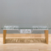 Medium: tempered glass, anodized aluminum, s.s. standoffs and solid alder
