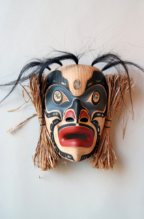 | Item: 9 Artist: Junior Henderson Title: Son of Chief Date: 2005 Size: 12" height x 9" width Medium: alder, abalone, horse hair Biography: Junior Henderson belongs to the Weiwaikum Band of the Kwaguitl Nation and comes from a long line of very distinguished carvers and artists. As a teenager, Junior apprenticed under his uncles Mark and Bill Henderson. Estimated value: $2, 450 |