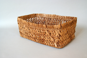 Medium: red cedar bark Description: Open weave basket with twill weave base.