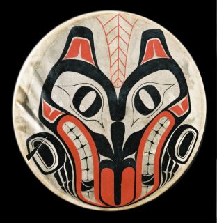 Reid, William Ronald (Bill) 1920-1998 Wolf drum, hand painted 1989 Yellow cedar, deer hide, acrylic paint and antler 44 cm x 7 cm (17.2” x 2.75”) Bill Reid Foundation Collection © #29